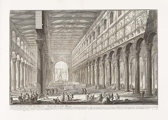 Piranesi schuf als Kupferstecher, aufbauend auf der italienischen Tradition der Veduten- und Ruinenmalerei, die vorliegenden einzigartigen, teils kühnen, großformatigen Ansichten des antiken und barocken Roms. Die Paläste und Ruinen werden von Piranesi mit malerischer Kraft in starken Hell-Dunkel-Kontrasten wirklichkeitsgetreu und doch teils ins Gigantische gewachsen gezeigt. Deren Wirkung auf das klassizistische Denken reichte bis ins 19. Jahrhundert hinein.