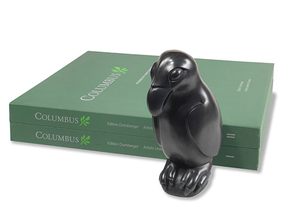 1 von 100 numerierten Exemplaren. - In dem vorliegenden Mappenwerk werden nicht nur Künstler unterschiedlichster Herkunft, sondern auch gleichzeitig verschiedene Kunstbereiche wie Bildende Kunst, Fotografie, Literatur, Musik und Schauspiel unter dem Aspekt der Umweltprobleme miteinander verbunden. - Mitwirkende Künstler sind u. a. Roy Lichtenstein (Rain Forest , Corlett 278), Eduardo Chillida (Columbus , van der Koelen 92010), Sigmar Polke (Kolumbus , Becker/von der Osten 94), Elvira Bach, Joseph Beuys, Max Bill (Prisma Prisma ), Christo, Hanne Darboven, Claus-Otto Paeffgen, Nam June Paik (Zeichen ), Antonio Tapies sowie Joe Cocker, Bryan Ferry, Mario Vargas Llosa und Peter Ustinov. - Die Graphik von Beuys aus dem Nachlaß. Zudem mit einer Orig.-Bronzeskulptur von B. Matemera (40 : 15 : 18 cm).